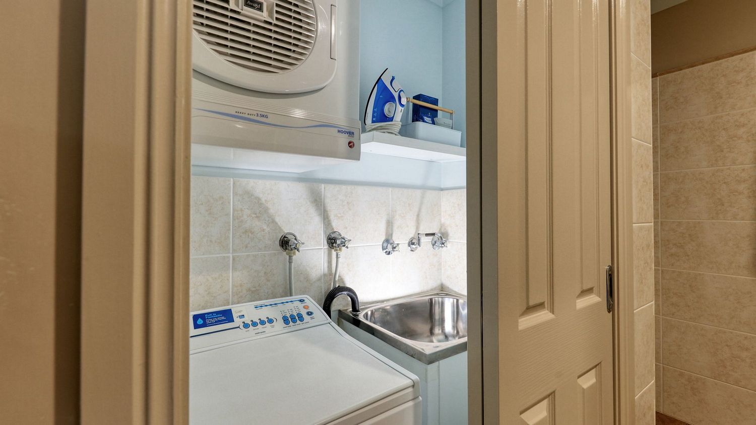 • Kitchen is fitted out with full size fridge, microwave, cook top, oven and dishwasher,